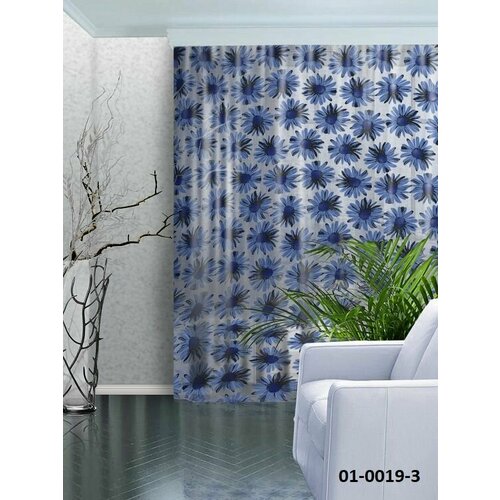 Тюль Лён Ромашки синий 300*270 (1) шт