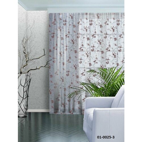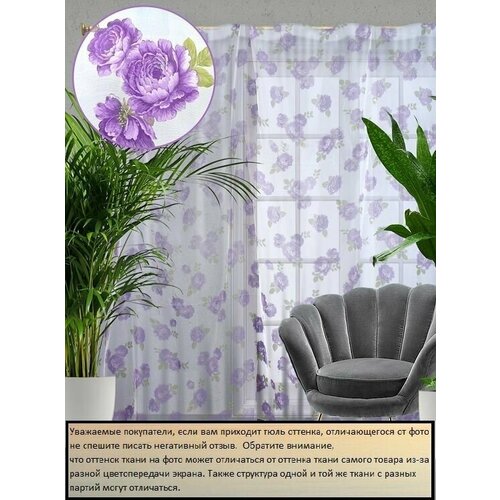 Тюль вуаль Сиреневый пион 300*270 (1шт)