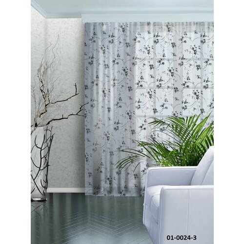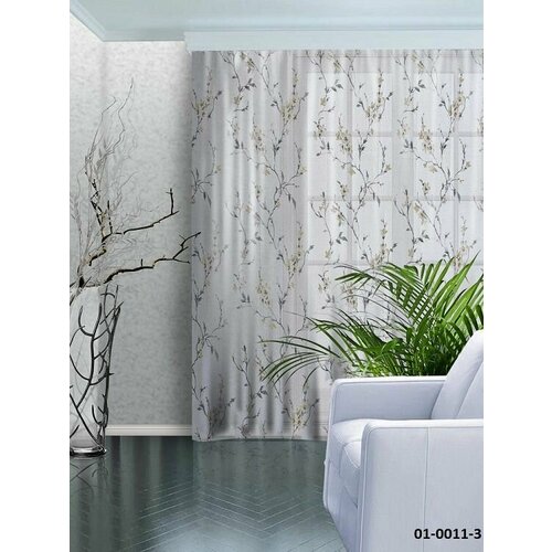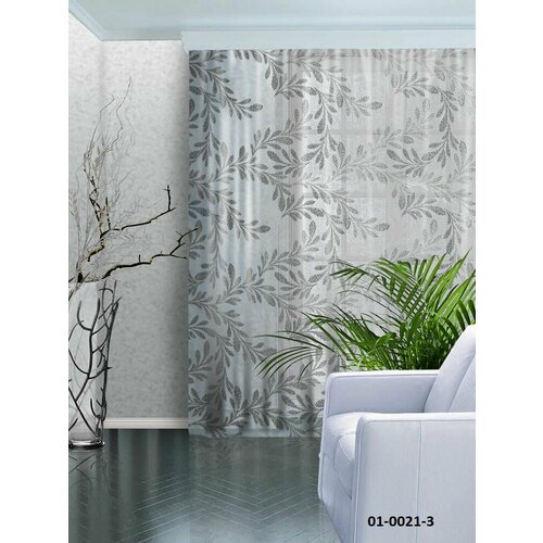 Тюль Лён ветки серый 300*270 (1) шт
