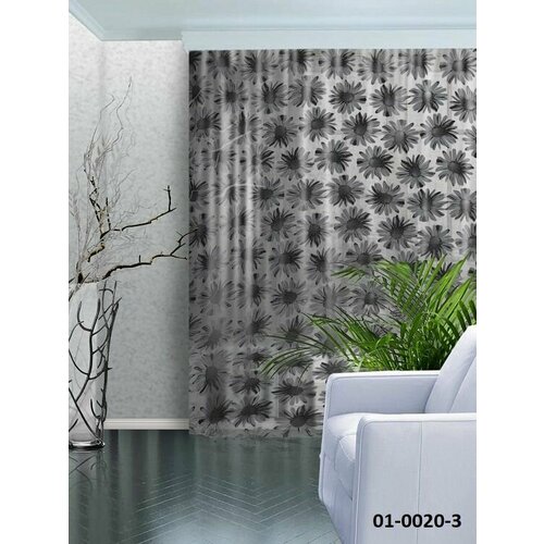 Тюль Лён Ромашки серый 300*270 (1) шт