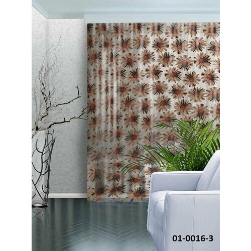 Тюль Лён Ромашки Коричневые 300*270 (1) шт