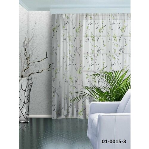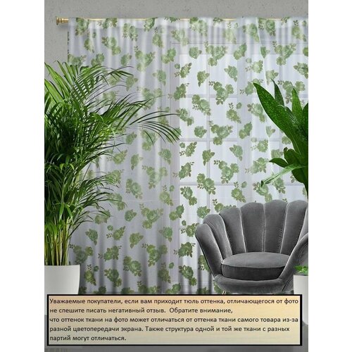 Тюль вуаль зеленый пион 300*270 (1шт)