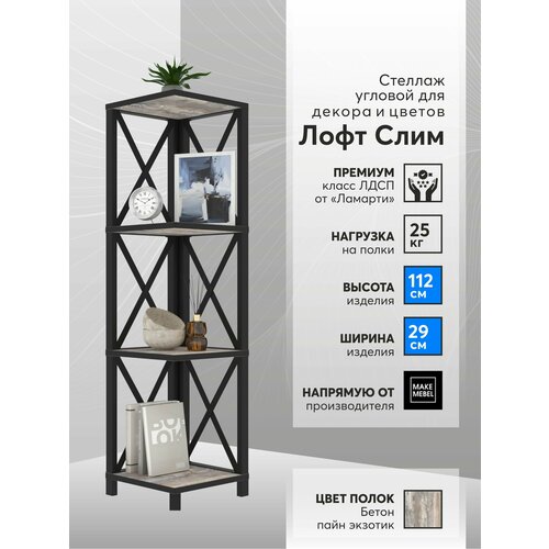 Стеллаж угловой Лофт Слим-4, 112 см Бетон пайн экзотик