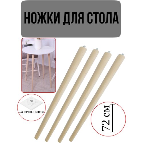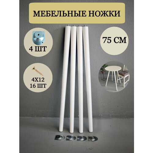 Опора мебельная, ножки деревянные для стола 75 см, 4 шт , Белый
