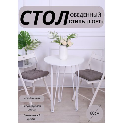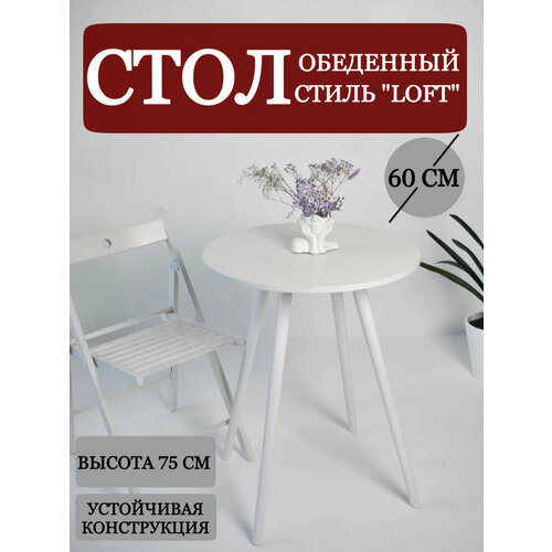 Стол кухонный нераскладной Loft, обеденный, круглый, подстолье - металл "Белый", ЛДСП "Белый" 60х75 см