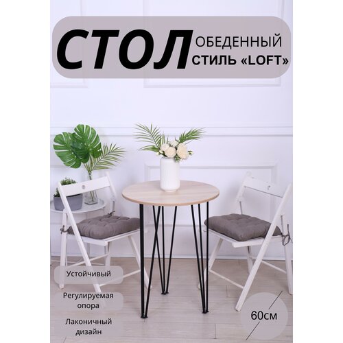 Стол кухонный лофт обеденнный круглый, подстолье - ножки дерево "Дуб", ЛДСП цвет "Дуб сонома" 60х75 см