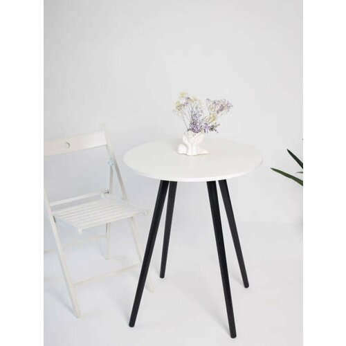 Стол кухонный лофт обеденнный круглый, белый, подстолье - ножки дерево "Черный", ЛДСП цвет "Белый" 60х75 см
