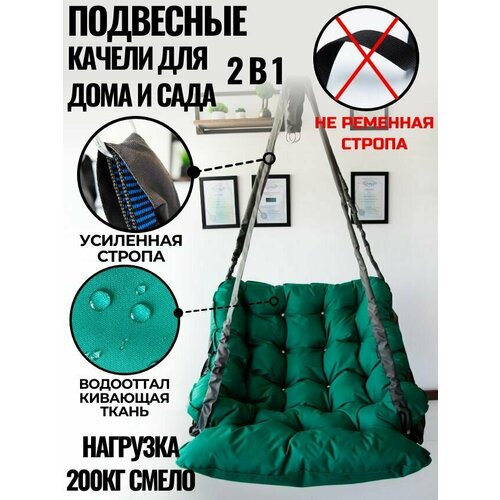 Качели садовые Mamsi-Papsi "Уют", подвесные, максимальная нагрузка 200 кг, цвет графит/салатовый