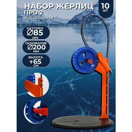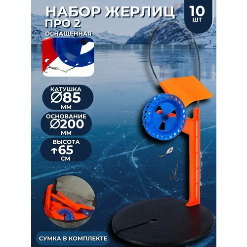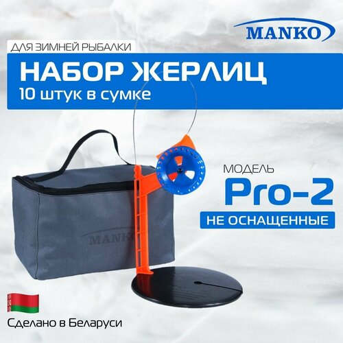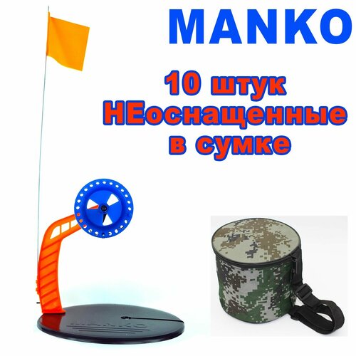 Жерлицы "MANKO Pro-2" не оснащенные, в сумке, 10 шт, диаметр 200 мм, катушка 85 мм, для ловли хищной рыбы со льда, высокая стойка, тормоз катушки