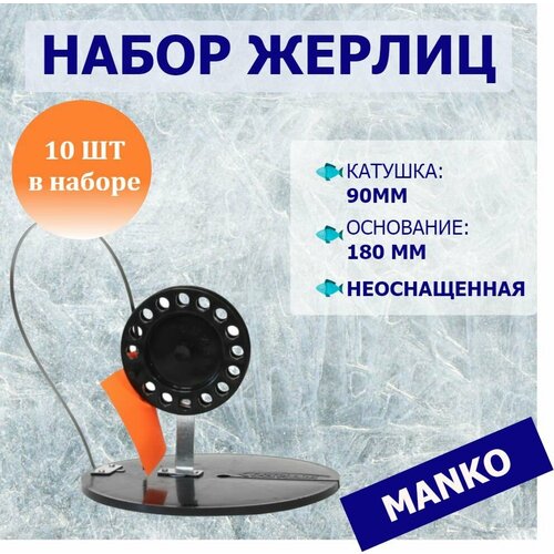 Набор катушек на жерлицу / Катушка рыболовная зимняя для жерлиц 60мм Manko , набор 10 шт.