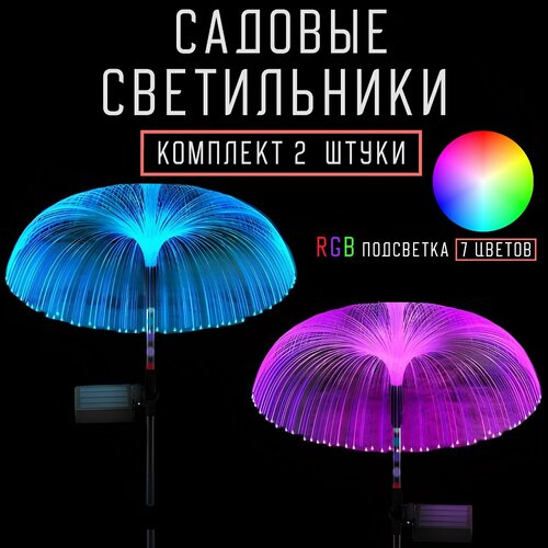 Светильники садовые на солнечной батарее с защитой от влаги, "Медуза", с колышком, 2 штуки комплект
