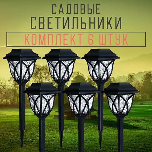 Светильники садовые на солнечной батарее с защитой от влаги, "Ретро-1", с колышком, 6 штук комплект
