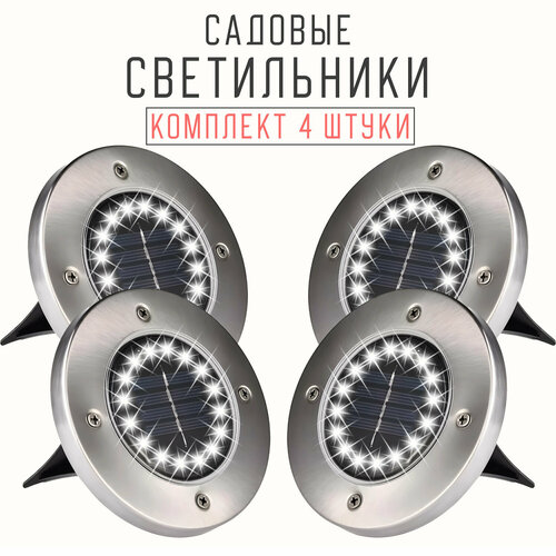 Лампы садовые на солнечной батарее с защитой от влаги, круглый, 16 диодов, 4 штуки комплект