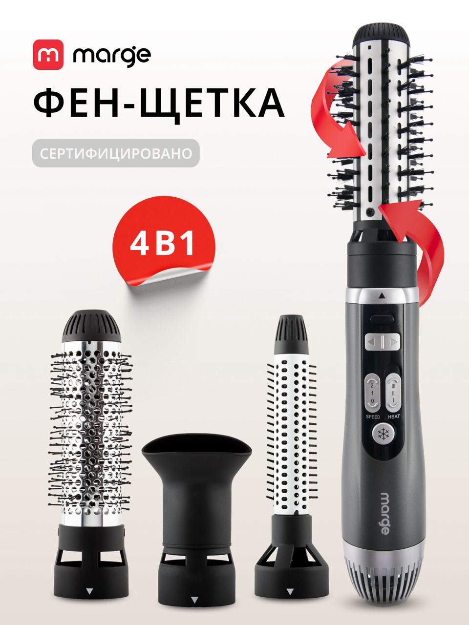 Фен-щетка для волос Marge 4 в 1 (графит) (HS-101GY)
