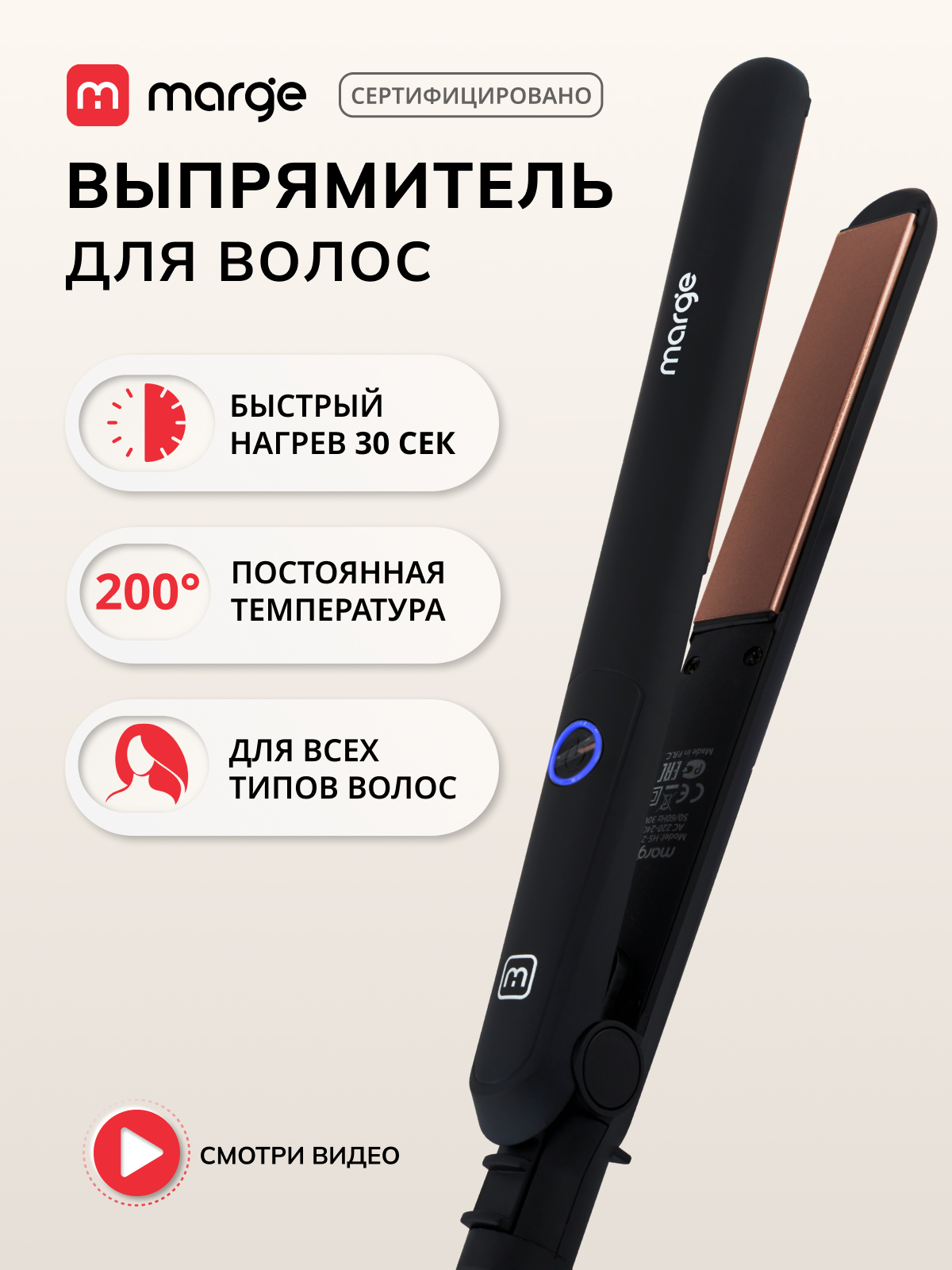 Выпрямитель для волос Marge Charm IRS Technology (HS-201B) (чёрный)