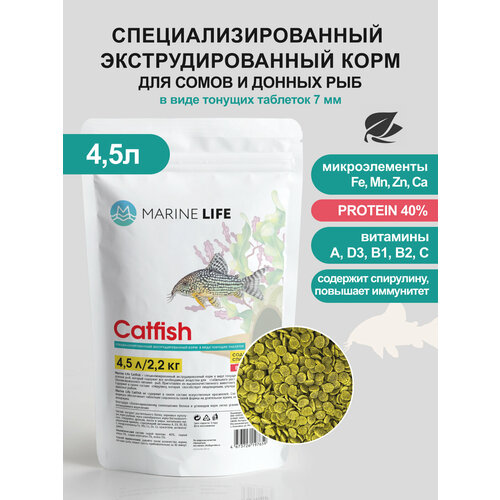 Корм для рыб Marine Life "Catfish" , для сомов, донных рыб , в виде таблеток, 2,2кг