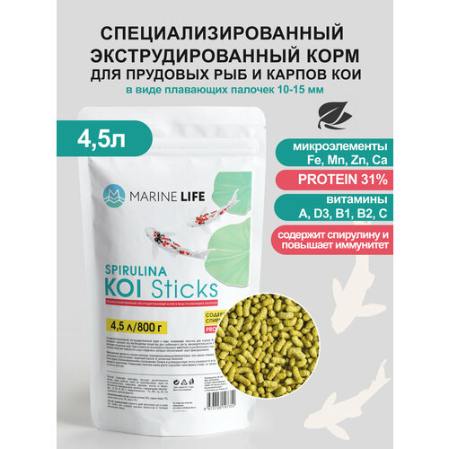 Корм Marine Life "KOI Sticks", для прудовой рыбы, карпов КОИ, плавающие палочки, 800г