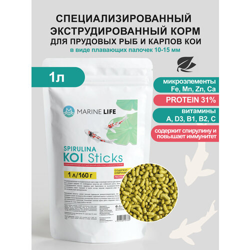 Корм Marine Life "KOI Sticks", для прудовой рыбы, карпов КОИ, плавающие палочки, 160 г