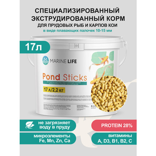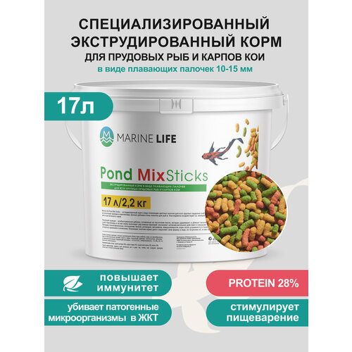 Корм Marine Life Pond MIX, для прудовых рыб, карпов, КОИ, плавающие палочки, 2,2 кг