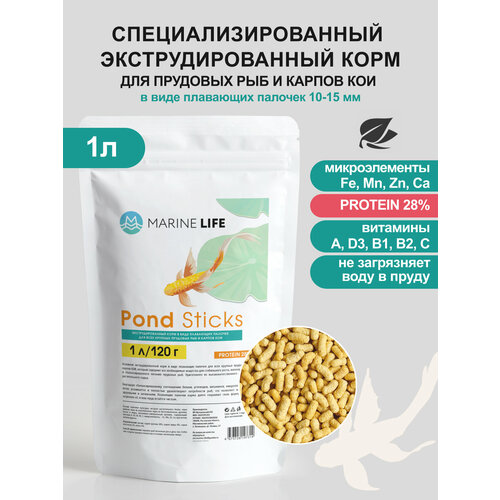 Корм Marine Life Pond, для прудовых рыб, карпа КОИ, плавающие гранулы, 120г