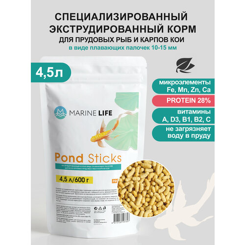 Корм Marine Life Pond, для прудовых рыб, карпа КОИ, плавающие гранулы, 600г