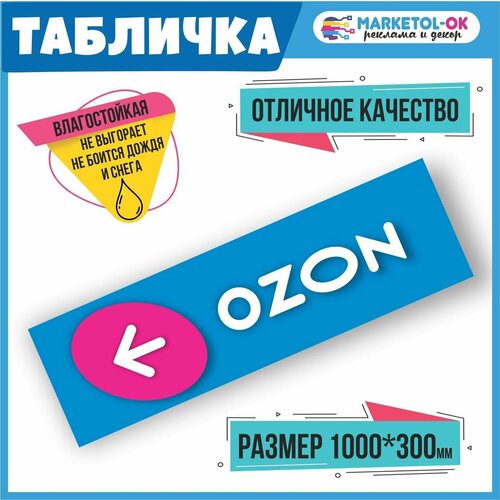 Табличка навигации ПВЗ Озон с стрелочкой вправо. Табличка навигации для пункта выдачи заказов OZON. ПВХ 3мм, 1000*300мм