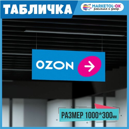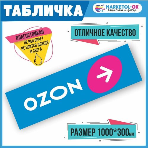 Табличка навигации ПВЗ Озон с стрелочкой вправо. Табличка навигации для пункта выдачи заказов. ПВХ 3мм, 1000*300мм
