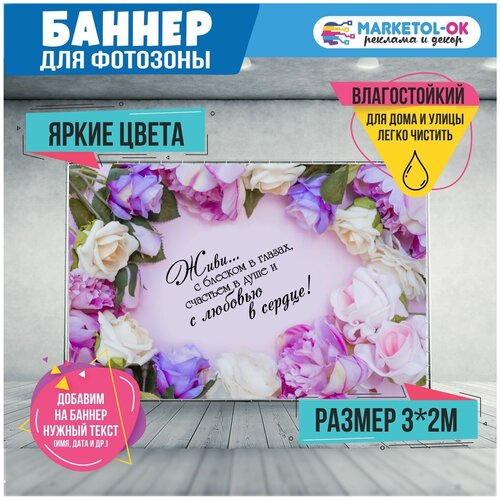 Баннер праздничный для фотозоны на День Рождения, свадьбу, юбилей. Универсальный праздничный постер, размер 300 x 200 см