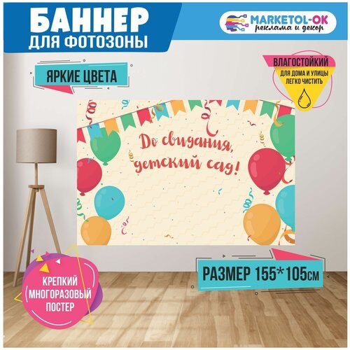 Баннер праздничный для фотозоны на выпускной в детский садик "До свидания, детский сад!", 155 x 105 см