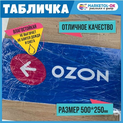 Табличка навигации ПВЗ Озон с стрелочкой влево. Табличка навигации для пункта выдачи заказов Ozon. ПВХ 3мм, 500*250мм