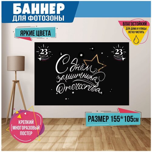 Баннер праздничный для фотозоны на 23 февраля. Поздравительный плакат на День защитника отечества, размер 155 x 105 см