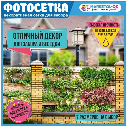 Баннер на забор с печатью на дачу. Баннерная сетка с рисунком для декора забора, беседки, ворот. Размер 300*158см