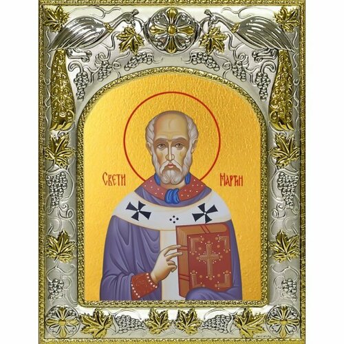 Икона Мартин Милостивый, 14x18 в серебряном окладе, арт вк-4070