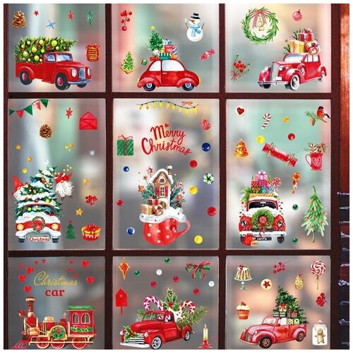 Рождественская наклейка на окна. Праздничные наклейки. Настенное панно новогоднее. Рождественское украшение для дома и оформления витрины магазина.
