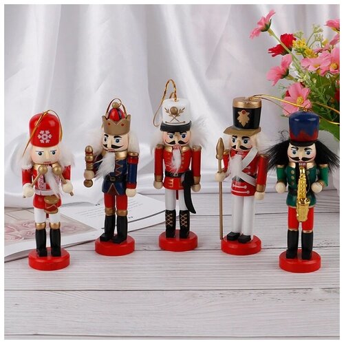 Набор елочных украшений / Новогодние игрушки на елку "Цветные рождественские деревянные фигурки Щелкунчик " 5шт. / Подарок на Новый год и рождество