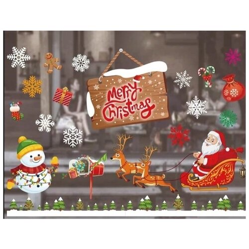 Рождественская наклейка на стену, окна. Праздничные наклейки. Рождественское украшение для дома и оформления витрины магазина.