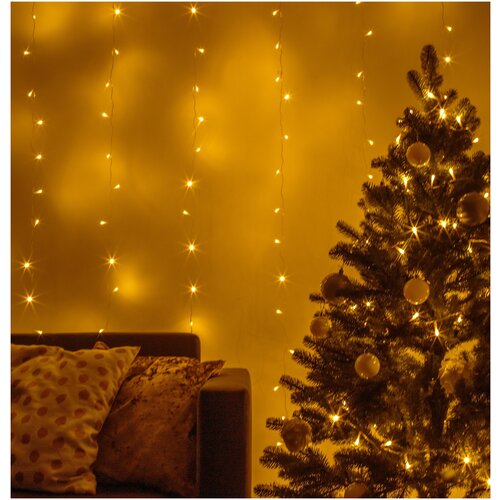 Гирлянда штора новогодняя светодиодная , теплый свет , 204 лампы , 3х2 метра , с пультом , от сети 220 Вт
