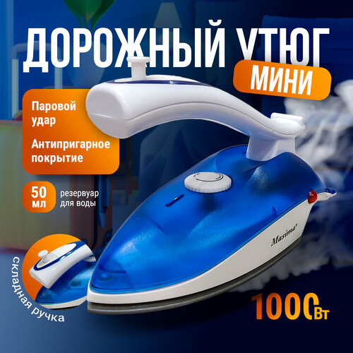 Утюг дорожный складной мини маленький портативный компактный походный в дорогу синий