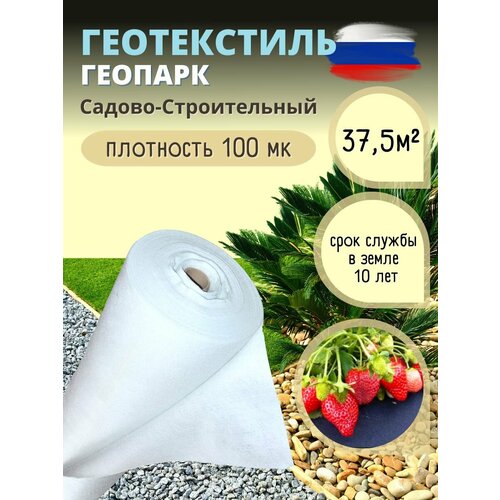 Геотекстиль нетканый иглопробивной геопарк, белый, рулон 1,5*25 м, плотность 100мк