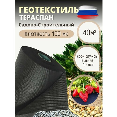 Геотекстиль садовый и строительный тераспан GEO,1,6*25 м, черный, плотность 100