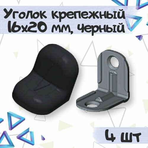 Уголок крепежный 16х20 мм с пластиковой крышкой, цвет - черный, 4 шт