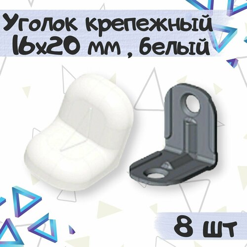 Уголок крепежный 16х20 мм с пластиковой крышкой, цвет - белый, 8 шт