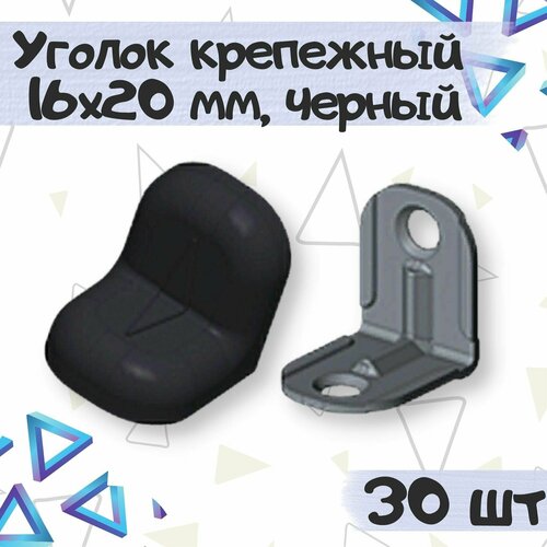 Уголок крепежный 16х20 мм с пластиковой крышкой, цвет - черный, 30 шт