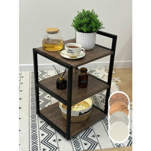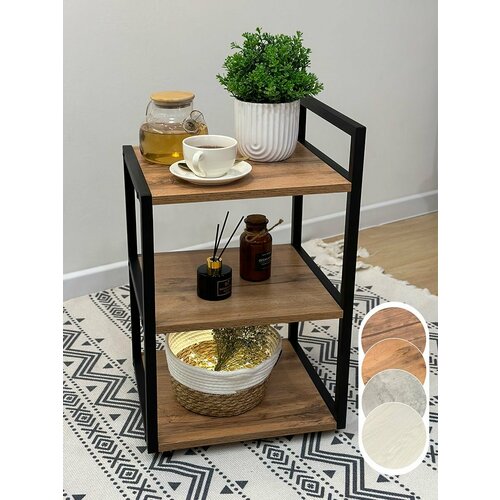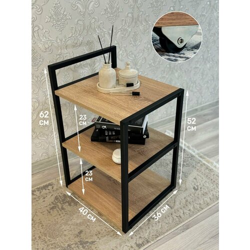 Прикроватный приставной журнальный столик MEBELVSTILE Loft, сонома/чёрный,36х56х70см