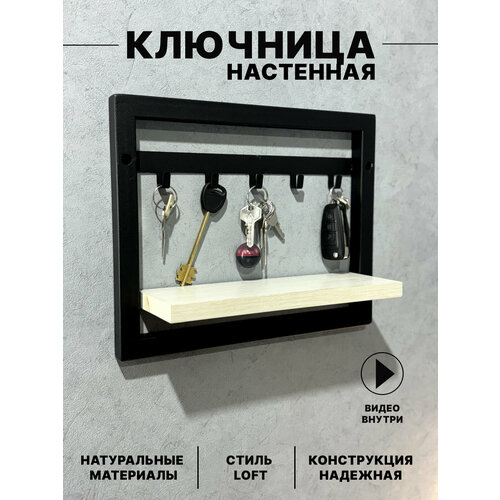 Ключница настенная с полочкой лофт MEBEL.VSTILE, 3 крючка анкор