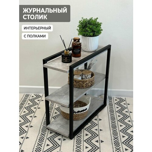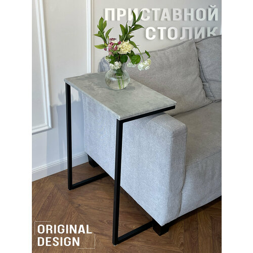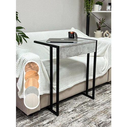 Прикроватный приставной журнальный столик MEBELVSTILE Loft, 60 x 56 x 23 см, бетон/чёрный, лофт
