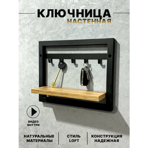 Ключница настенная с полочкой лофт MEBEL.VSTILE, 3 крючка анкор черный