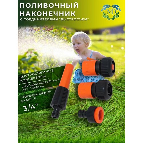 Набор для полива пистолет-душ многофункциональный с соединителями MEDALYAN "быстросьем" 3/4" MD-707