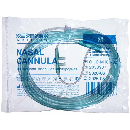 Канюля MEDEREN назальная кислородная р. М со стандартным наконечником, длина кислород. трубки 2130мм ± 50мм