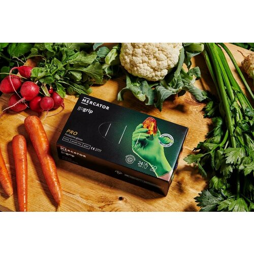Перчатки особо прочные нитриловые размер XL, Меркатор/Mercator GoGrip, защитные зеленые, 25 пар